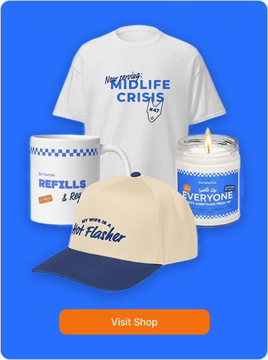 Your midlife survival kit—equal parts coffee, chaos, and comedy—delivered weekly.